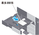 最多可以向纸盒1装入200张明信片。以下示例说明如何装入A6卡片的明信片。