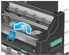 朝自身方向倾斜鞍式装订盒的蓝色旋钮。