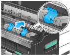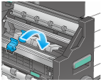 将鞍式装订盒的蓝色旋钮推到背部。