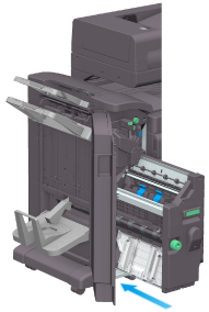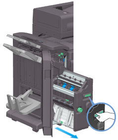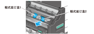 一定要在相关信息显示后再更换鞍式装订盒。在没有显示相关信息时卸下鞍式装订盒,可能导致故障。