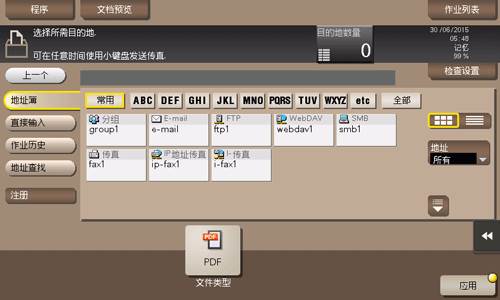 此操作将显示本机注册的目的地列表。使用索引切换显示,然后指定目标目的地。